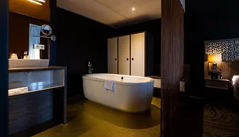 De leuke details zijn onder meer geluiddichte ramen samen met een bank en een bureau. De privé badkamers hebben een apart toilet en een douche.